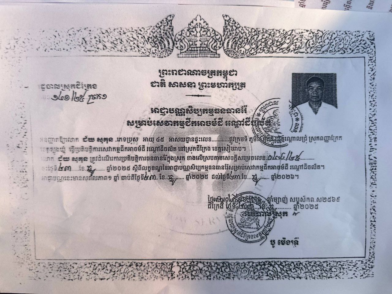 ២) ប័ណ្ណអនុញ្ញាតជីកយកអាចម៍ដីពីសាលាស្រុកជីក្រែង
