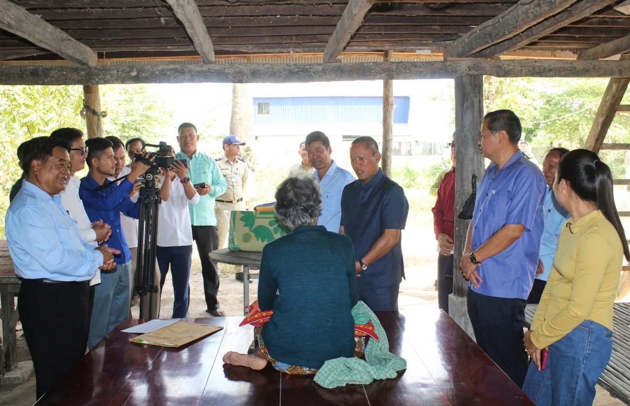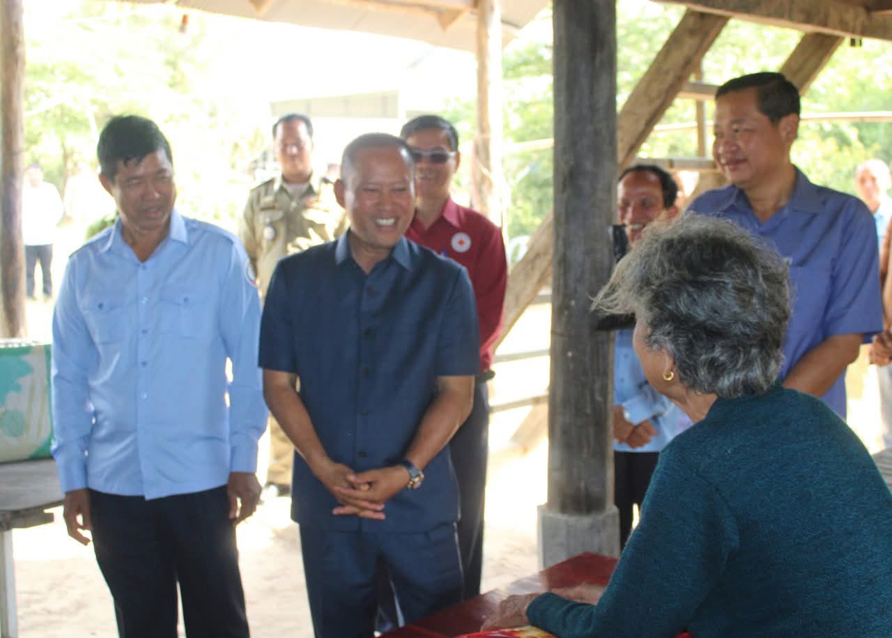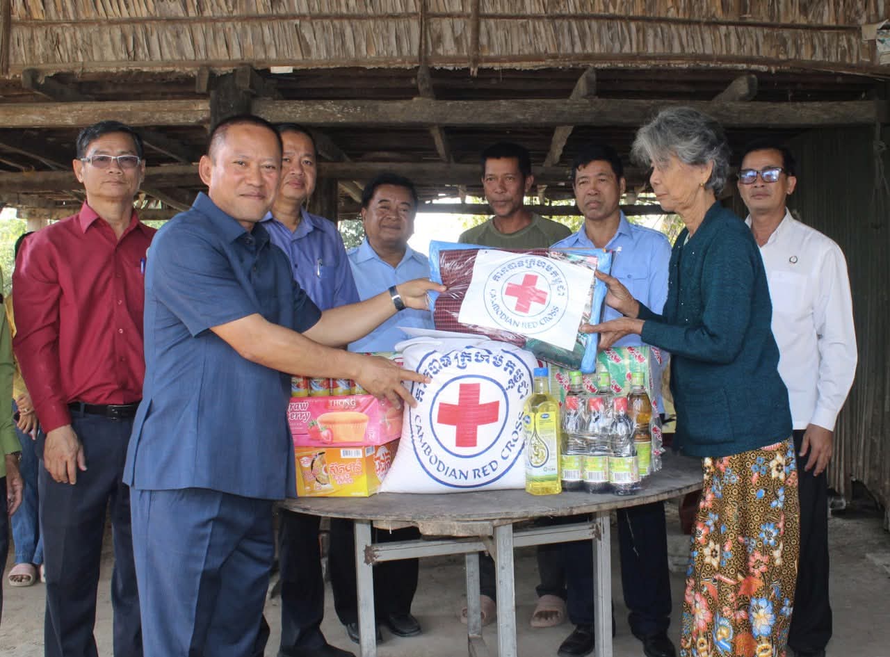 តាកែវ ៖ នៅថ្ងៃទី២៩ ខែមករា ឆ្នាំ២០២៦ ឯកឧត្តម វ៉ី សំណាង អភិបាលខេត្តតាកែវ និងជាប្រធានគណៈកម្មាធិការសាខាកាកបាទក្រហមកម្ពុជាខេត្ត រួមដំណើរដោយសមាជិក សមាជិកាគណៈកម្មាធិការសាខា លោកនាយកប្រតិបត្តិសាខា លោកអភិបាលស្រុកសំរោង បានអញ្ជើញចុះសួរសុខទុក្ខ និងនាំយកអំណោយមនុស្សធម៌របស់សាខាកាកបាទក្រហម និងថវិការរដ្ឋបាលខេត្តមកផ្តល់ជូនគ្រួសារលោកយាយ ឃួន សេង អាយុ ៨០ឆ្នាំ ដែលកំពុងមានជំងឺប្រចាំកាយ មានកូន ជាវីរៈកងទ័ពប្រចាំការ នៅគោលដៅភូមិព្រៃចាន់។