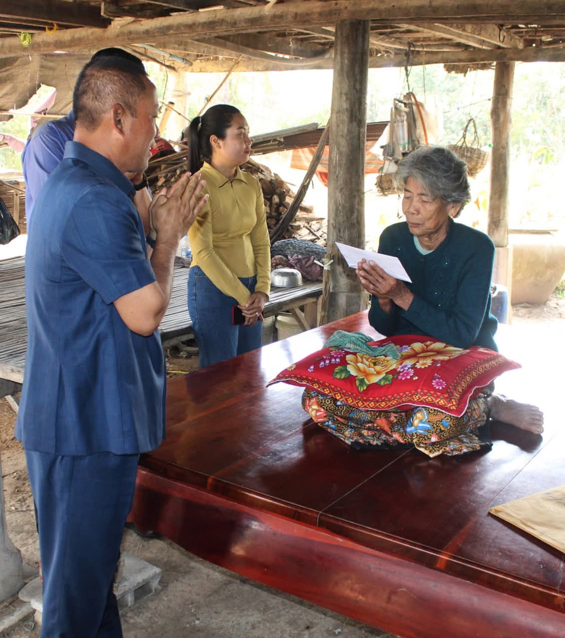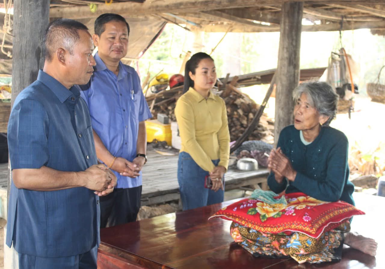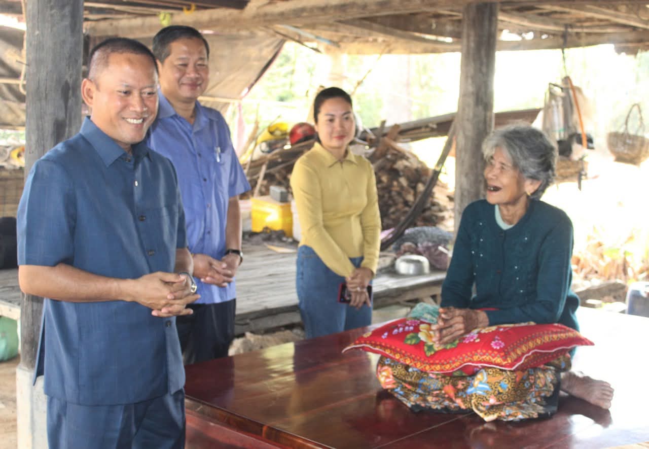 តាកែវ ៖ នៅថ្ងៃទី២៩ ខែមករា ឆ្នាំ២០២៦ ឯកឧត្តម វ៉ី សំណាង អភិបាលខេត្តតាកែវ និងជាប្រធានគណៈកម្មាធិការសាខាកាកបាទក្រហមកម្ពុជាខេត្ត រួមដំណើរដោយសមាជិក សមាជិកាគណៈកម្មាធិការសាខា លោកនាយកប្រតិបត្តិសាខា លោកអភិបាលស្រុកសំរោង បានអញ្ជើញចុះសួរសុខទុក្ខ និងនាំយកអំណោយមនុស្សធម៌របស់សាខាកាកបាទក្រហម និងថវិការរដ្ឋបាលខេត្តមកផ្តល់ជូនគ្រួសារលោកយាយ ឃួន សេង អាយុ ៨០ឆ្នាំ ដែលកំពុងមានជំងឺប្រចាំកាយ មានកូន ជាវីរៈកងទ័ពប្រចាំការ នៅគោលដៅភូមិព្រៃចាន់។