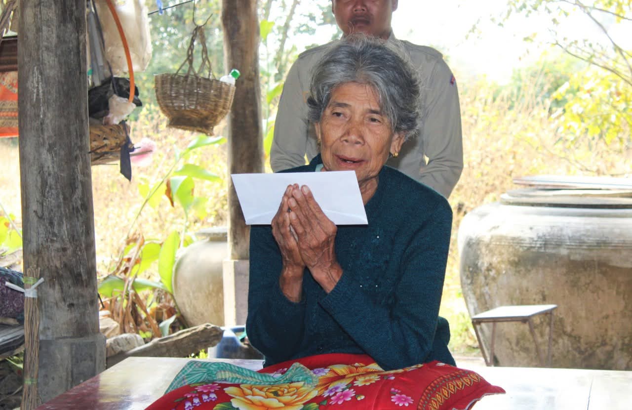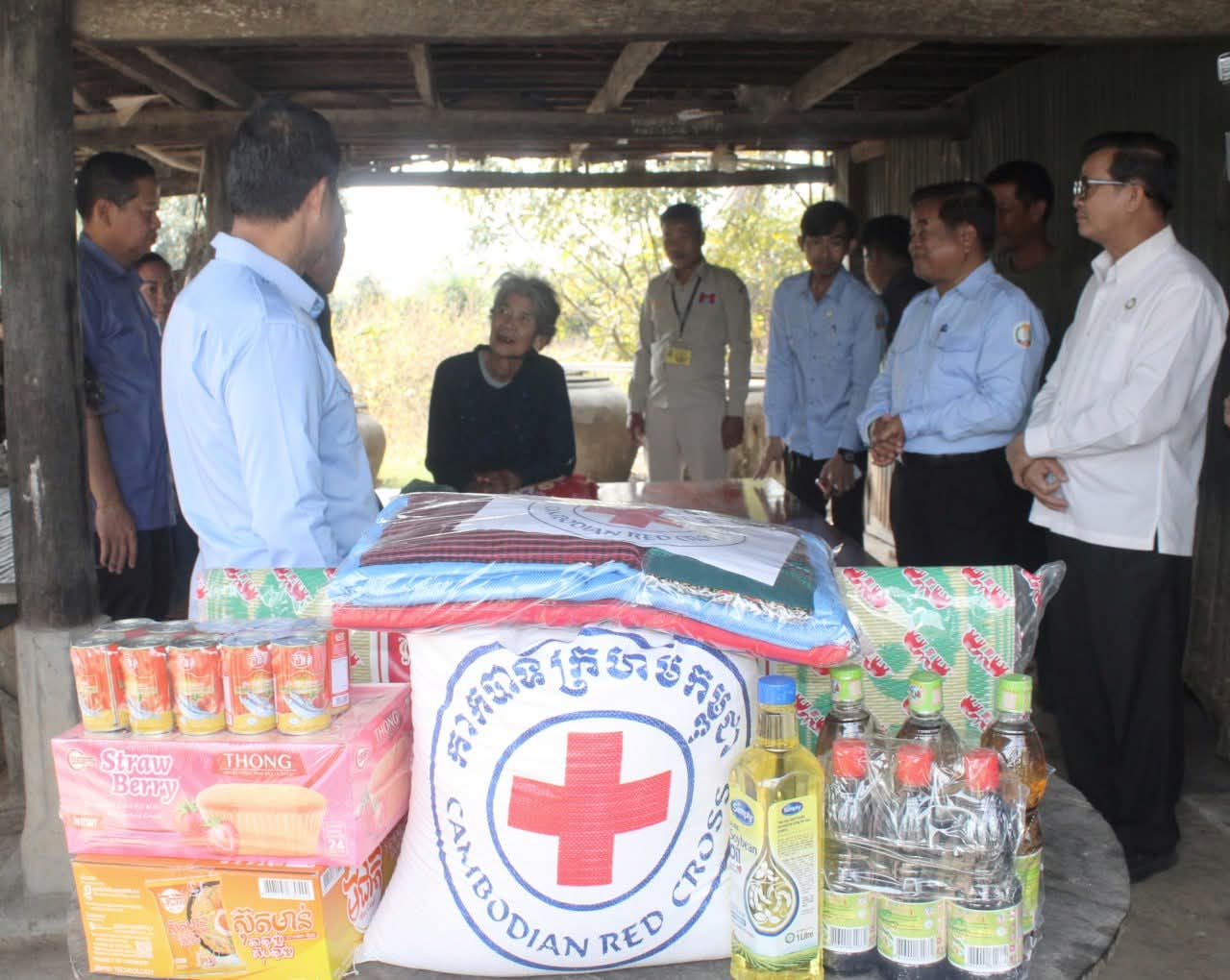 សូមបញ្ជាក់ថា អំណោយដែលបានប្រគល់ជូនរួមមាន៖ អង្ករ ២៥គីឡូក្រាម ត្រីខកំប៉ុង ១យួរ មី ១កេស ប្រេងឆា ១លីត្រ នំ ១ប្រអប់ ទឹកត្រី ៣ដប ទឹកស៊ីអ៊ីវ ៣ដប កន្ទេល១ មុង ១ ភួយ១ សារុង១ ក្រម៉ា១ និងថវិកាមួយចំនួនទៀត៕