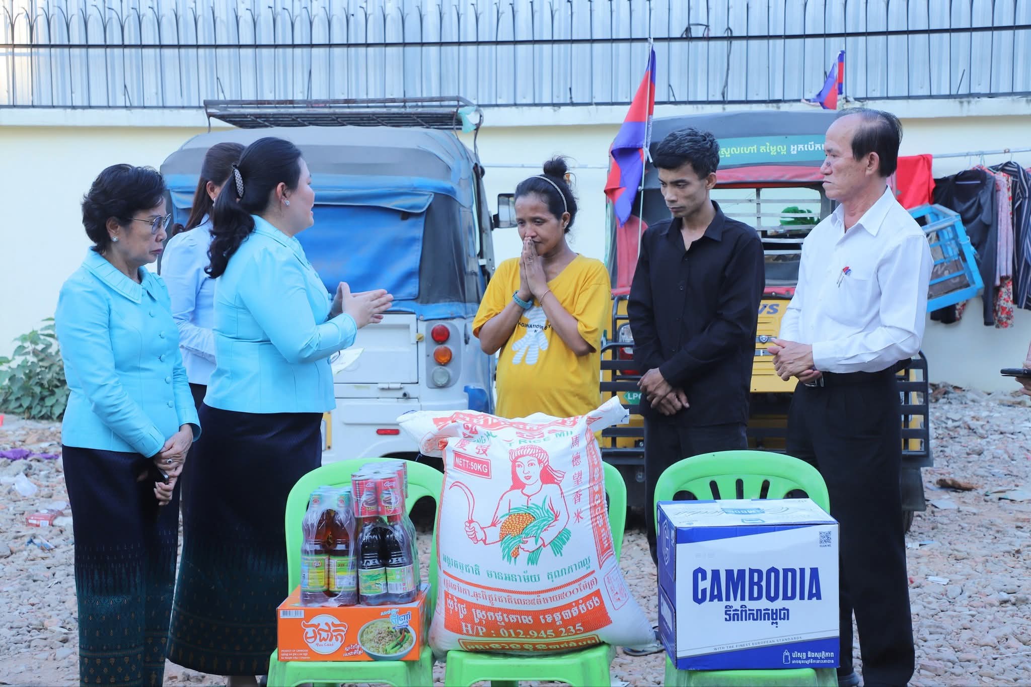 មានមតិសំណេះសំណាលនាឱកាសនោះ លោកជំទាវ ស្រ៊ុន ស្រីនាង ក្នុងនាមឯកឧត្តម គួច ចំរើន ប្រធានគណៈកម្មាធិកាសាខា បាននាំមកនូវការចូលរួមរំលែកទុក្ខដ៏មហាក្រៀមក្រំពីសំណាក់សម្ដេចកិត្តិព្រឹទ្ធបណ្ឌិត ប៊ុន រ៉ានី ហ៊ុន សែន ប្រធានកាកបាទក្រហមកម្ពុជា ដល់គ្រួសារសព។ លោកជំទាវ ស៊្រុន ស្រីនាង បានបញ្ជាក់ថា ទុក្ខលំបាករបស់ប្រជាជនគ្រប់រូប គឺជាក្តីកង្វល់របស់ថ្នាក់ដឹកនាំ ដែលត្រូវតែបានគិតគូរ និងស្វែងរកដំណោះស្រាយបញ្ហាប្រឈមមួយដ៏ល្អប្រសើរ ជាក់ស្តែងដូចជាការនាំយកអំណោយ មកផ្តល់ជូនគ្រួសាររងគ្រោះនាពេលនេះជាដើម ទោះបីវាមិនអាចជួយបានទាំងស្រុងក៏ដោយ ក៏ប៉ុន្តែយើងបានចូលរួមចំណែកក្នុងការជួយដោះស្រាយនូវការខ្វះខាតរបស់បងប្អូនបានមួយផ្នែកផងដែរ។ ម៉្យាងទៀតអំណោយដែលសាខាបាននាំយកមកឧបត្ថម្ភជូនបងប្អូននាឱកាសនេះ គឺពុំមានការប្រកាន់នូវពូជសាសន៍ ពណ៌សម្បុរ សាសនា ឬនិន្នាការនយោបាយអ្វីឡើយ។