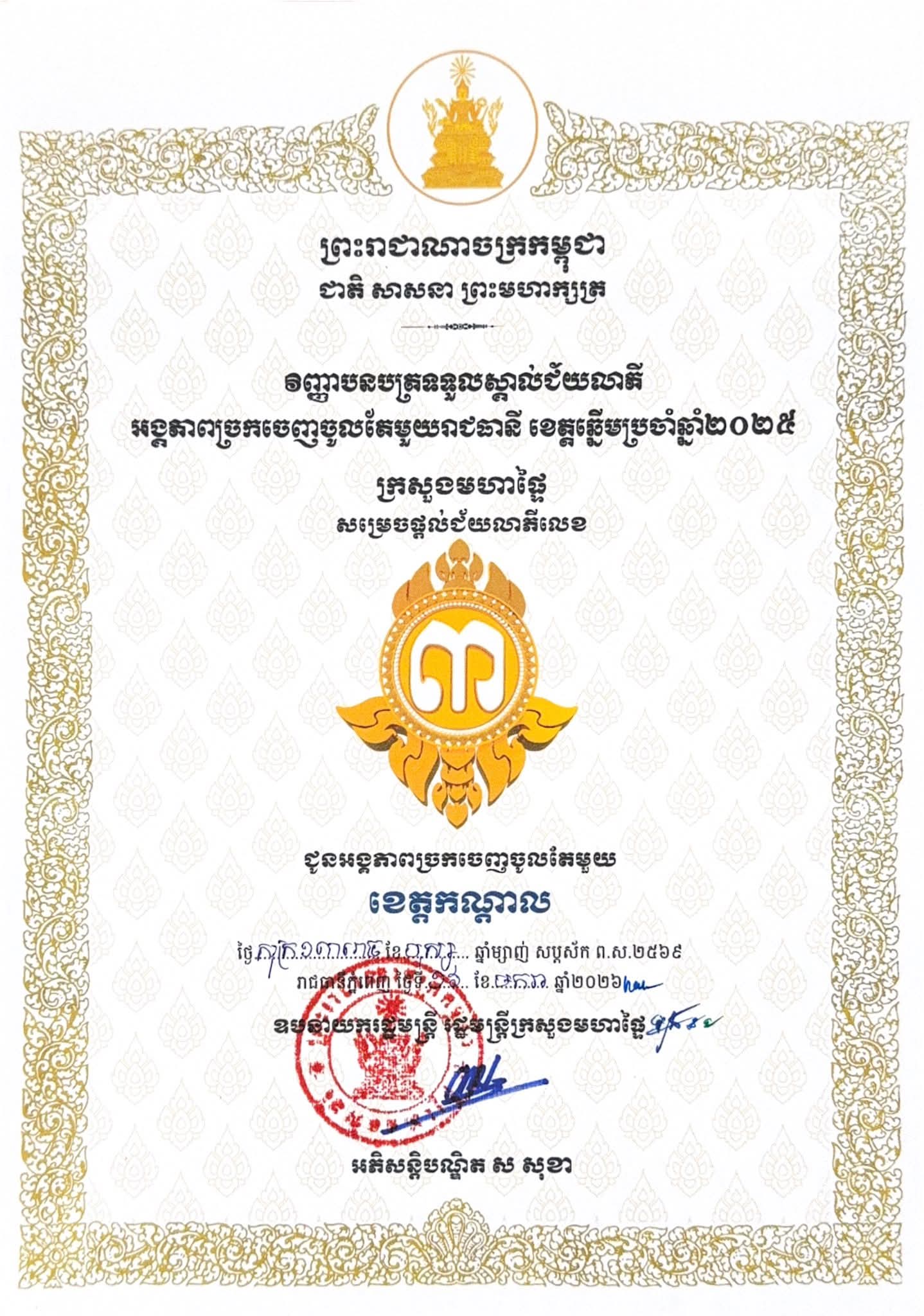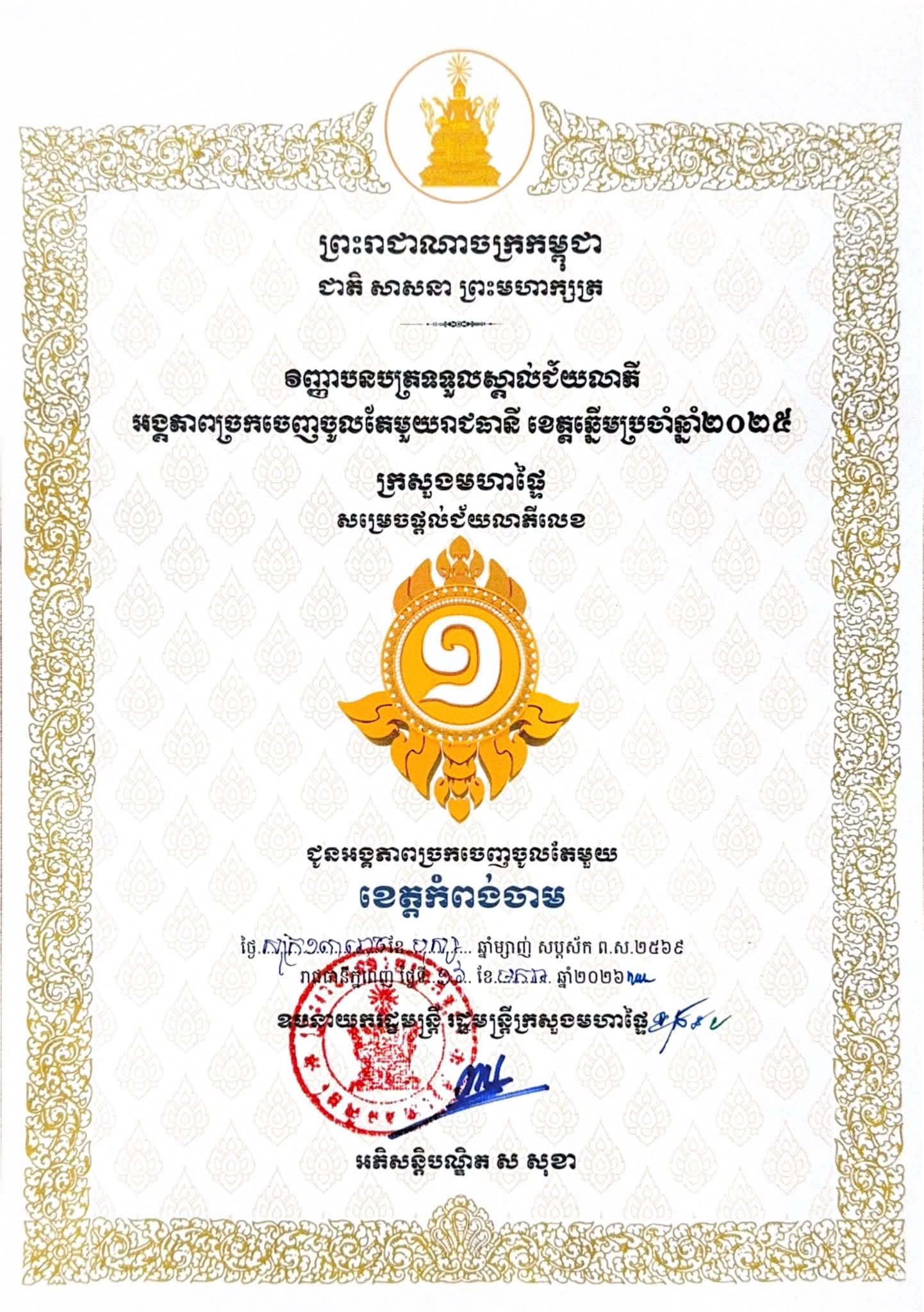 សម្រាប់ឆ្នាំ២០២៥កន្លងទៅនេះ ការិយាល័យប្រជាពលរដ្ឋខេត្តដែលមានស្នាដៃឆ្នើម ចំណាត់ថ្នាក់លេខ១៖ ខេត្តកំពង់ចាម ចំណាត់ថ្នាក់លេខ២៖ ខេត្តកណ្តាល និងចំណាត់ថ្នាក់លេខ៣៖ ខេត្តកំពត។ ដោយឡែកសម្រាប់អង្គភាពច្រកចេញចូលតែមួយរាជធានី ខេត្តដែលមានស្នាដៃឆ្នើម ចំណាត់ថ្នាក់លេខ១៖ ខេត្តកំពង់ចាម ចំណាត់ថ្នាក់លេខ២៖ រាជធានីភ្នំពេញ និងចំណាត់ថ្នាក់លេខ៣៖ ខេត្តកណ្តាល។