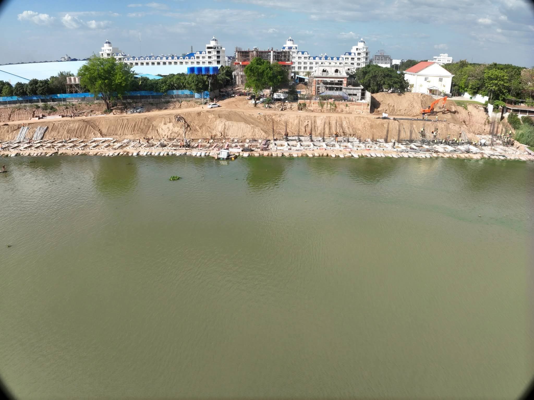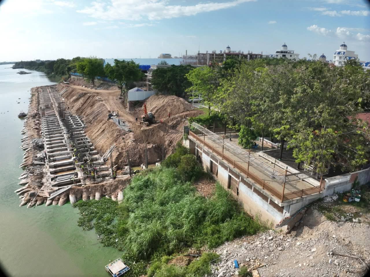 លោក ឈា ប៊ុនរិទ្ធ បញ្ជាក់ថា សំណង់ការពារច្រាំងទន្លេ ស្ថិតក្នុងភូមិព្រែកតាគង់ ខណ្ឌជ្រោយចង្វានេះ ជាការវិនិយោគដោយវិស័យឯកជនក្នុងគោលបំណងការពារការបាក់ច្រាំង ដែលមានប្រវែងសរុប២២០ម៉ែត្រ។ បច្ចុប្បន្ន សំណង់សម្រេចការសាងសង់បានប្រមាណ៨ភាគរយប៉ុណ្ណោះ ដោយទទួលបានការឯកភាពជាគោលការណ៍ពីរដ្ឋបាលរាជធានីភ្នំពេញ កាលពីថ្ងៃទី៣ធ្នូ ឆ្នាំ២០២៥កន្លងទៅ ប៉ុន្តែពុំទាន់មានការអនុញ្ញាតផ្នែកបច្ចេកទេសពីក្រសួងនៅឡើយទេ។