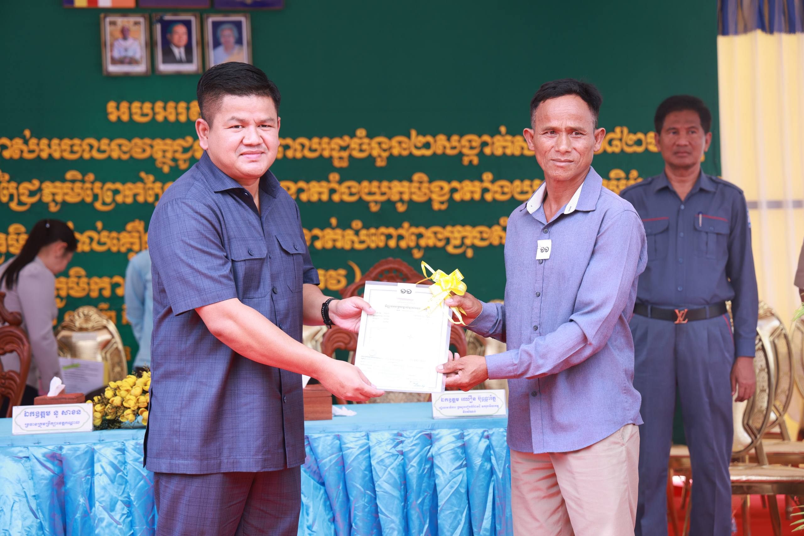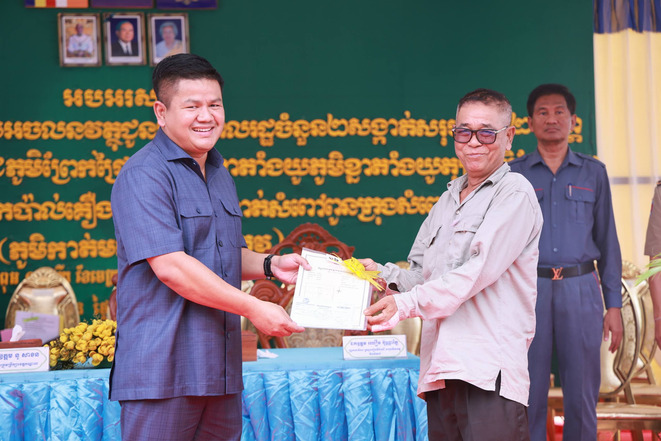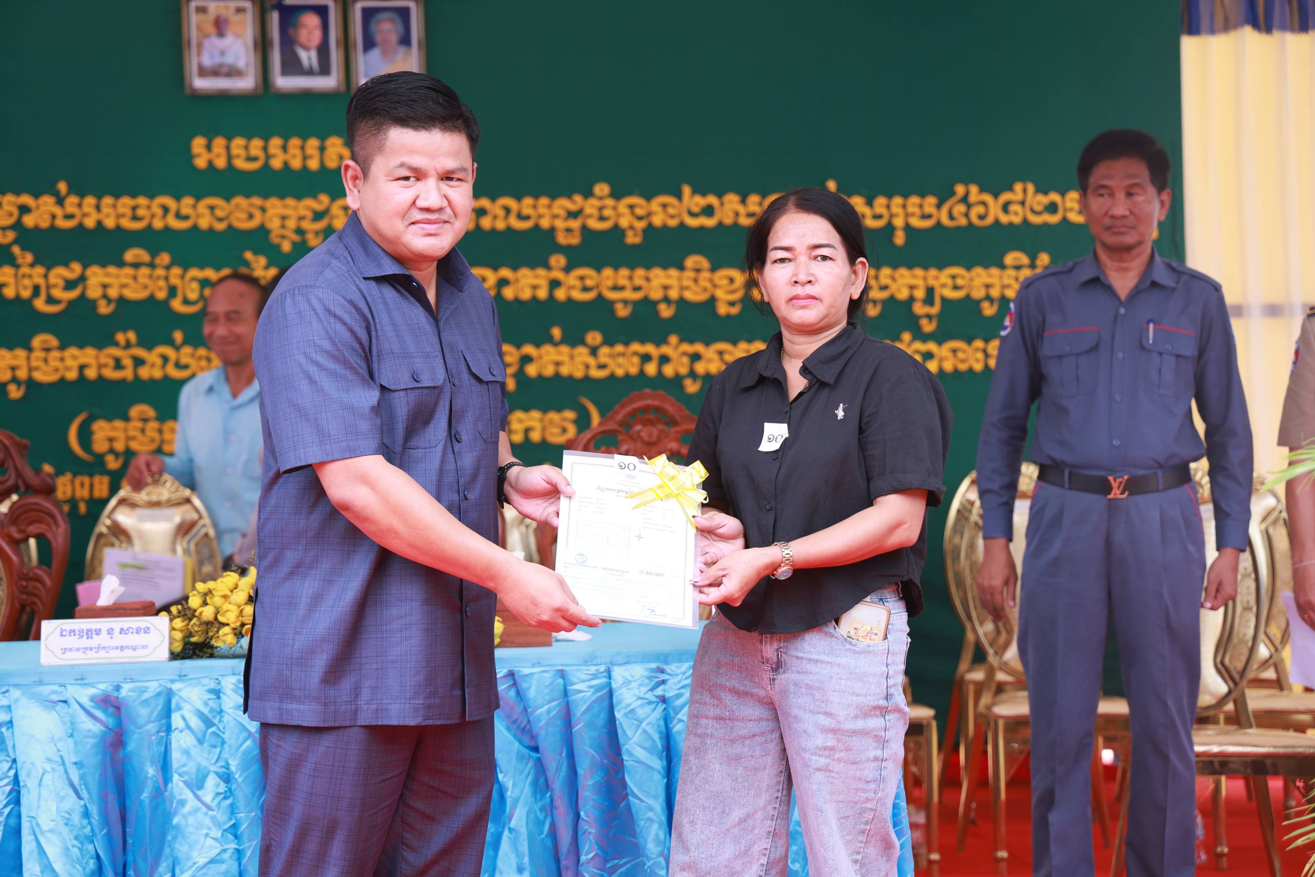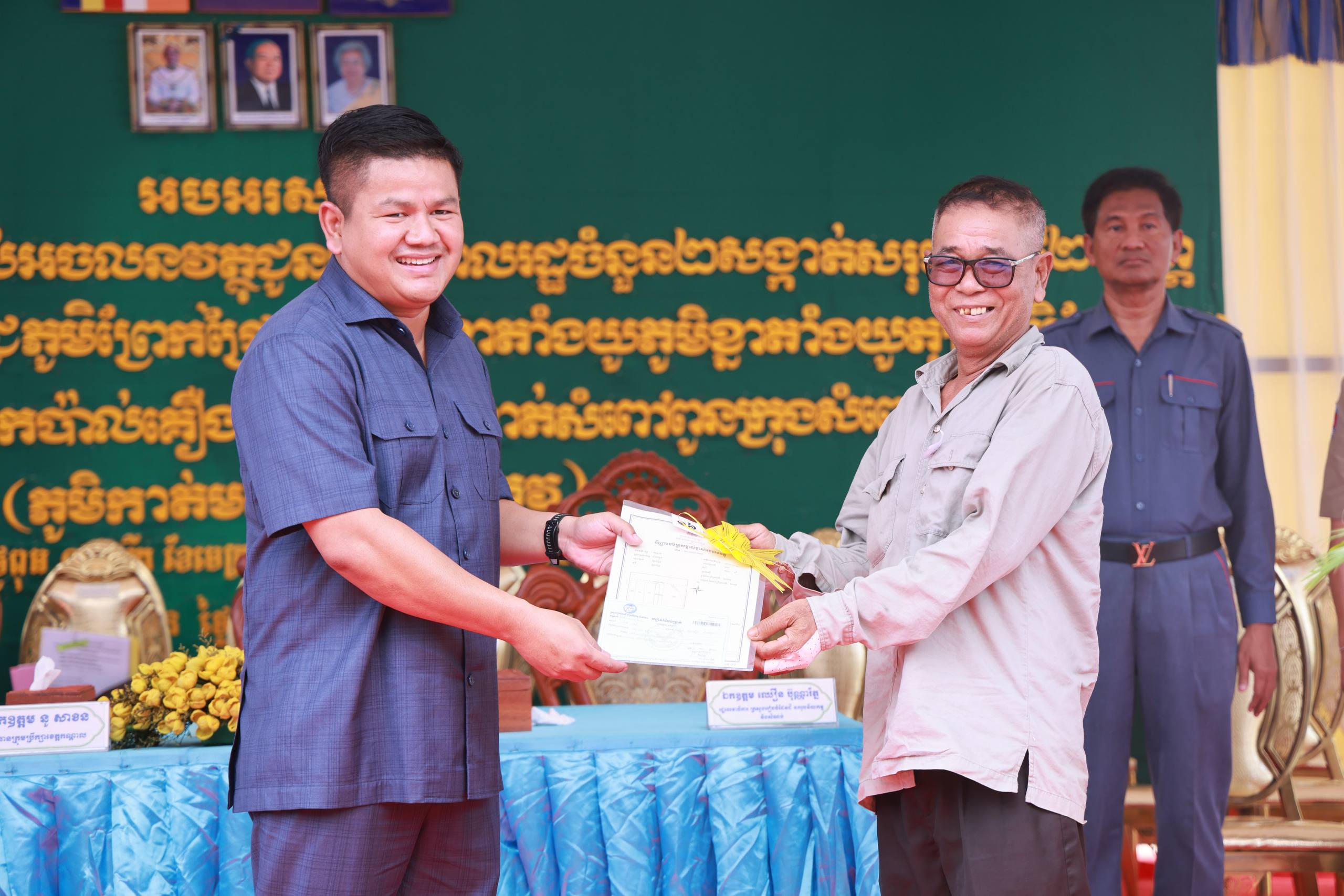 ឯកឧត្តមក៏បានផ្ដាំផ្ញើដល់ប្រជាពលរដ្ឋថា បណ្ណកម្មសិទ្ធិដីធ្លី (ប្លង់រឹង) គឺជាឯកសារសំខាន់បំផុត សម្រាប់បញ្ជាក់សិទ្ធិកាន់កាប់ស្របច្បាប់ អាចប្រើប្រាស់ក្នុងការទិញលក់ បញ្ចាំ ឬអភិវឌ្ឍដីធ្លីបានដោយមានសុវត្ថិភាព និងទទួលស្គាល់ដោយអាជ្ញាធរ ជៀសវាងជម្លោះ និងការរំលោភបំពាន។